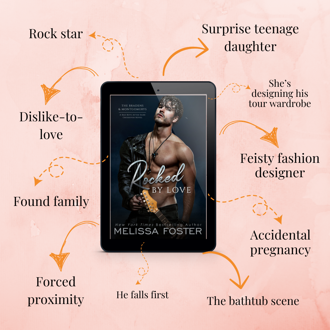 ROCKED BY LOVE - A cocky rock star with no plans of settling down. A feisty fashion designer with no time for drama. And a surprise teenage daughter who changes their worlds. (This is the tenth book in The Bradens & Montgomerys, Pleasant Hill – Oak Falls)