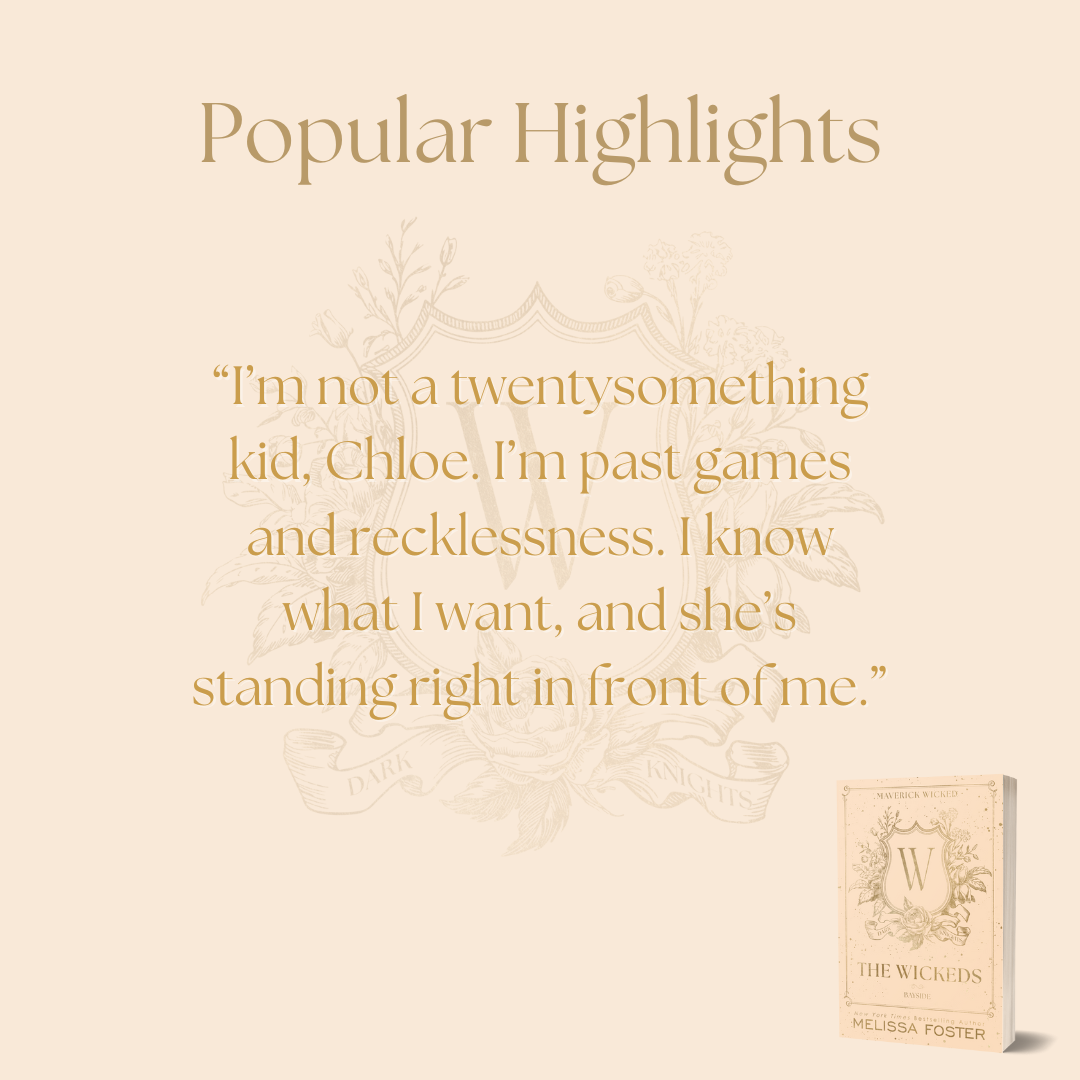 Set on the sandy shores of Cape Cod, the Wickeds feature fiercely protective heroes, strong heroines, and unbreakable family bonds. If you think bikers are all the same, you haven’t met the Dark Knights. The Dark Knights are a motorcycle club, not a gang. Their members stick together like family and will stop at nothing to keep their communities safe. Their stories are told in the same loving, passionate voice readers have come to adore from Melissa. Some of the Wickeds’ love stories will be hilariously fun, others will tear at your heartstrings with injections of humor, but they will all leave you wishing you could climb between the pages and join them!